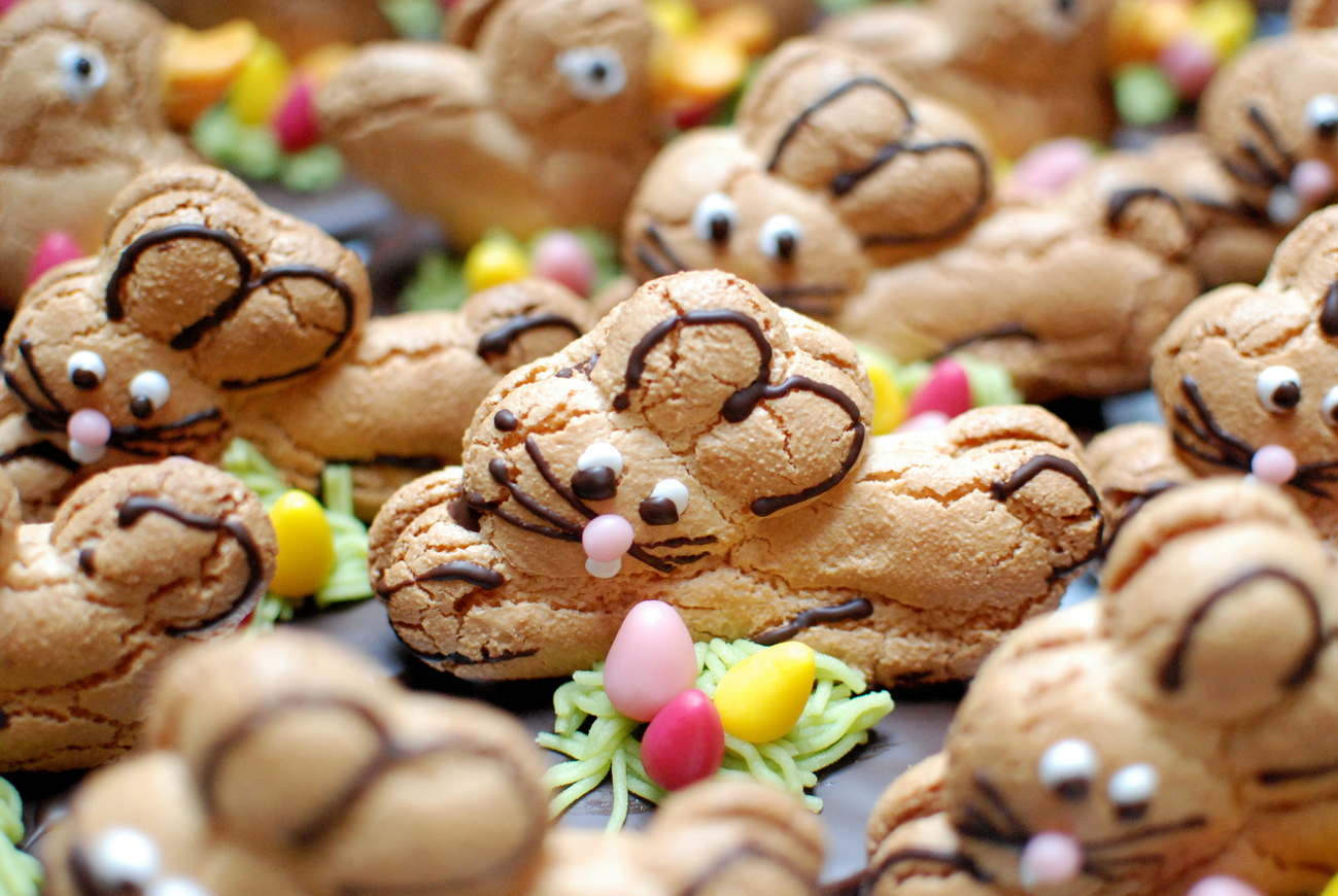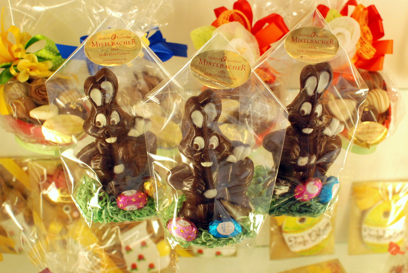 Ostern ist das Fest der Freude. Endlich wird der Osterhase wieder zum Eierlieferanten und in unserer Bäckerei reiht sich ein frisch gebackenes Osterlamm an das andere. In dieser Zeit dürfen wir in unserer Konditorei auch wieder kreativ sein. Wir modellieren Ostereier aus Marzipan und Zucker-Brioche darf auch nicht fehlen. Also: "Wenn Mehlspeis-Duft weht um die Nasen, liebe Grüße vom Mistlbacher Osterhasen".