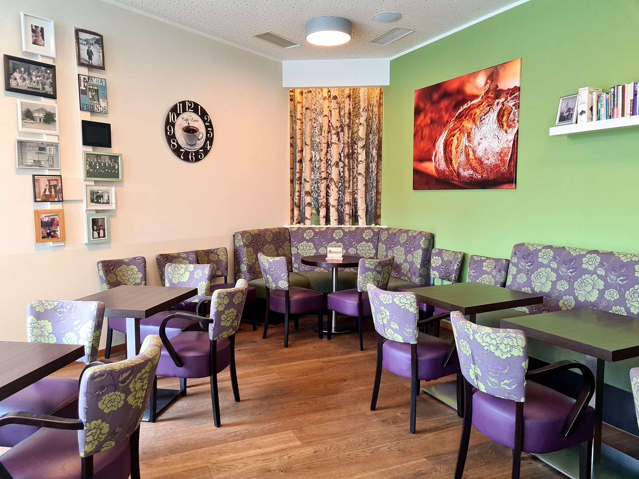 Hier verwöhnen wir Sie im klassisch-modernen Ambieten mit hausgemachten Mehlspeisen und kleinen Imbissen. Im Sommer lädt der großzügige Außenbereich zum Kaffeetrinken und Eis gustieren ein.