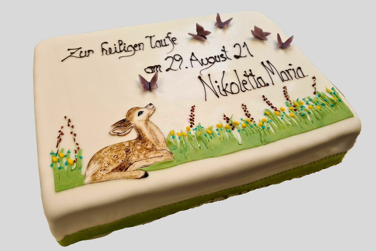 Ganz besondere Momente verdienen ein viel bestauntes Torten Kunstwerk. Zur Taufe, zum Kinder-Willkommensfest, zur Erstkommuion oder Firmung - alle individuellen Torten aus unserer Konditorei werden mit viel Liebe zum Detail per Hand dekoriert und verziert.